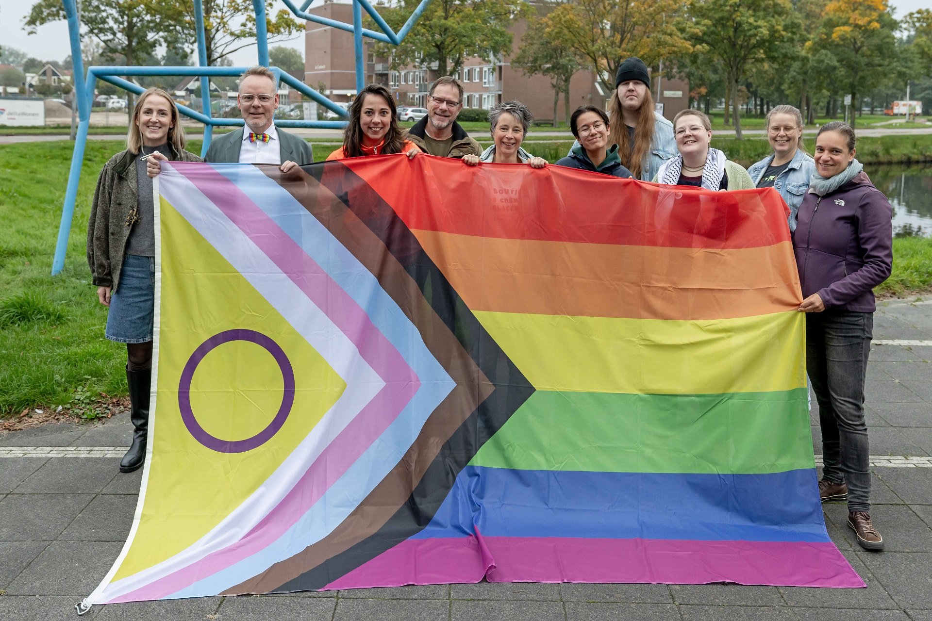 De gemeente heeft zaterdag 11 oktober de diversiteitsvlag gehesen ter gelegenheid van Coming Out Dag. Wethouder Richard Boddeus en gemeentemedewerker Fleur Wilmsen hesen samen de vlag, als krachtig symbool van inclusie en verbondenheid.